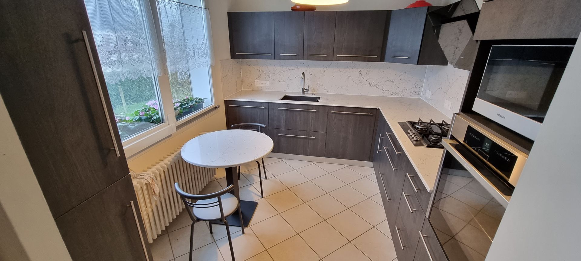 Vous choisissez les matériaux de vos meubles – bois, mélaminé, stratifié, laqué – ainsi que les matériaux des plans de travail – stratifié, résine, pierre, quartz. Et nous nous occupons du reste.