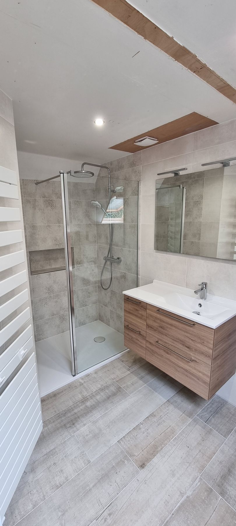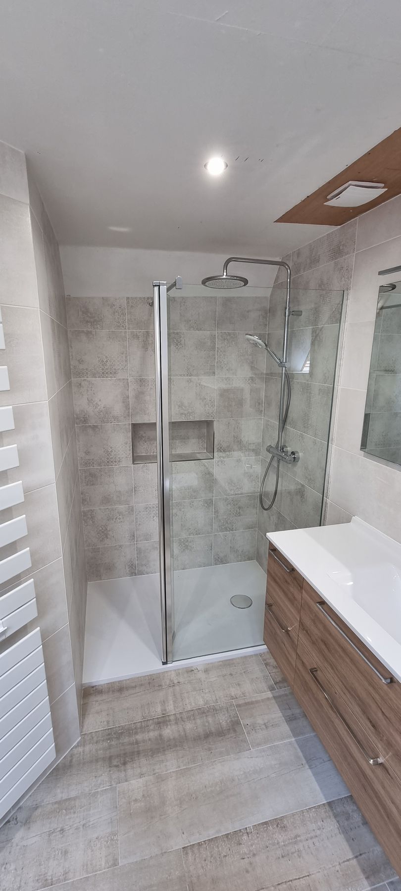 Pour une salle de bains clé en main, nous sous-traitons les travaux d’électricité et de pose de carrelage si cela est nécessaire. Nous travaillons avec des fournisseurs reconnus : Ambiance Bain, You, Grohé, Kludi, et Acova…